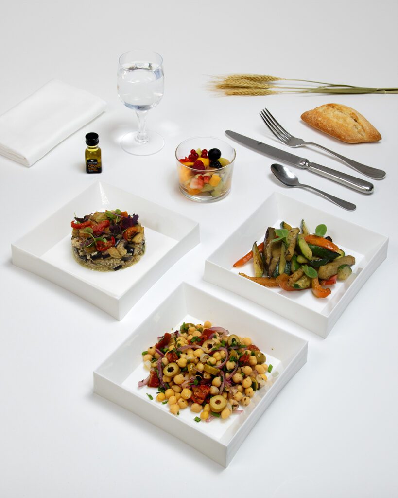 – Salade pois chiches, olives et tomates séchées, oignon vert, origan et huile d’olive au citron (échalote)